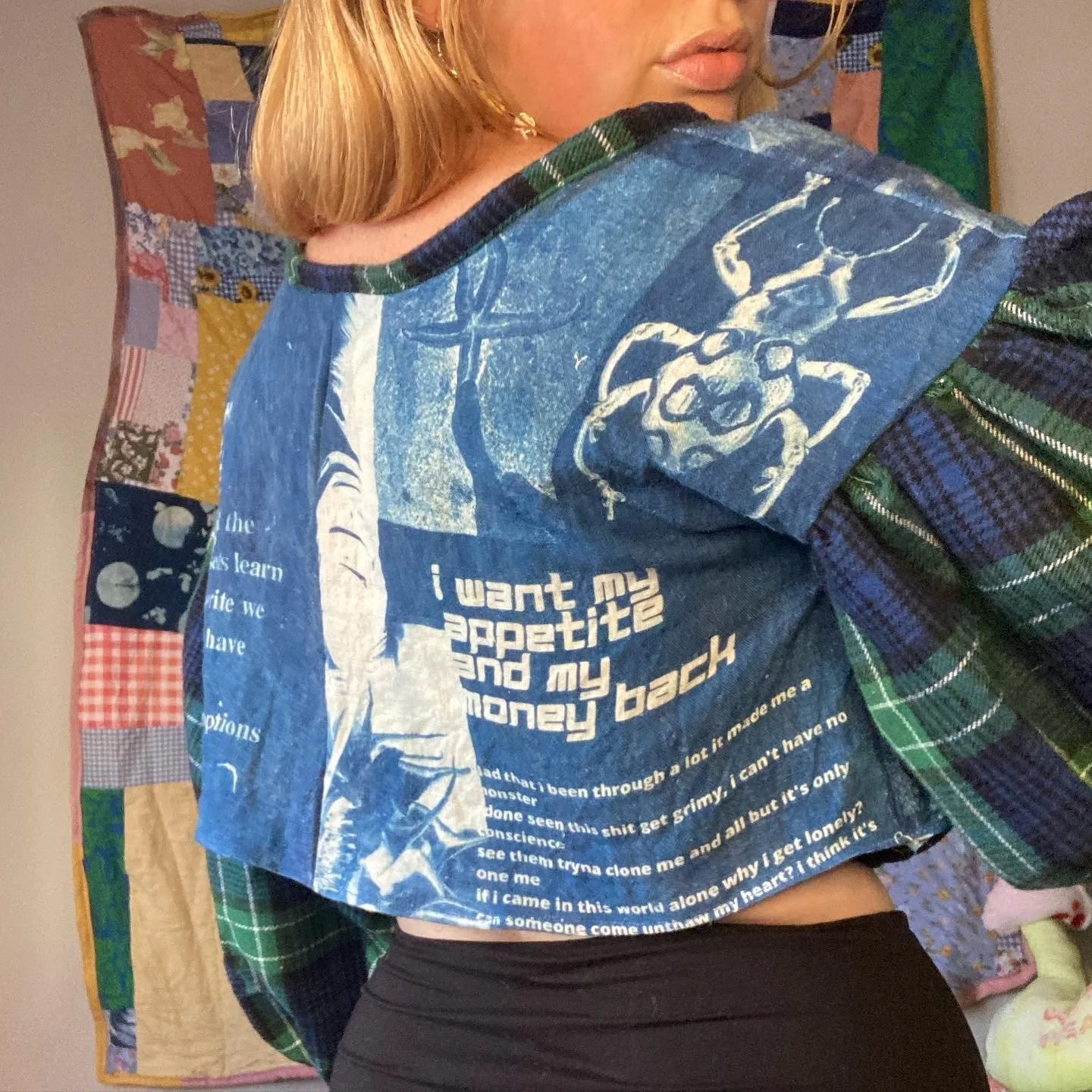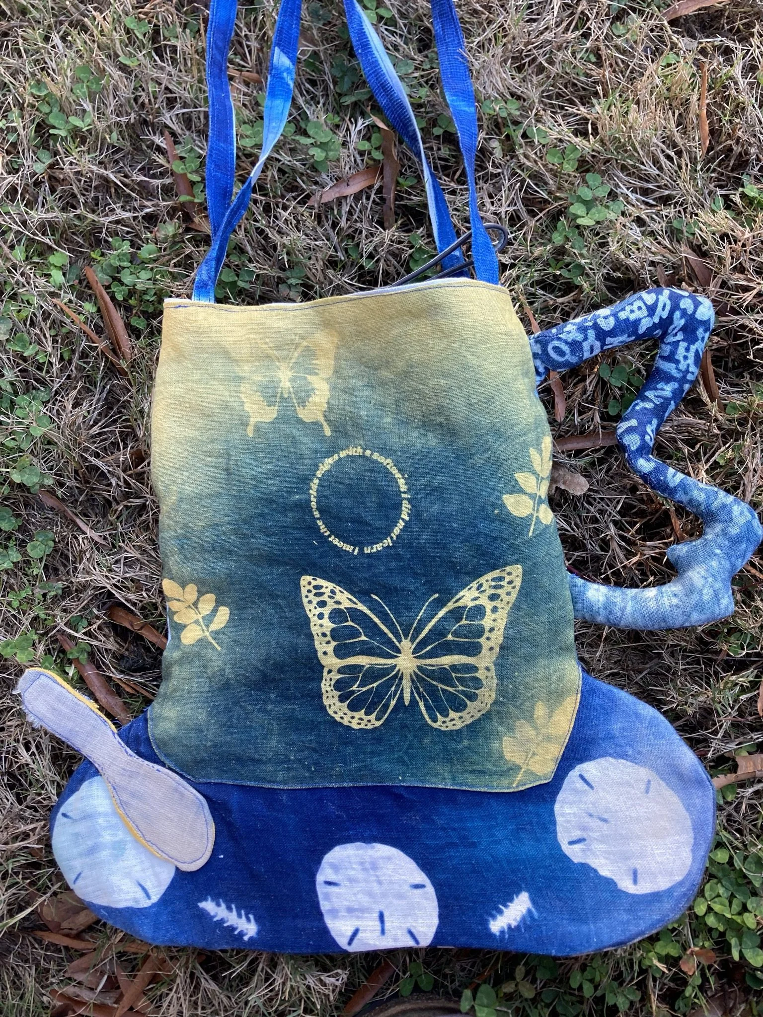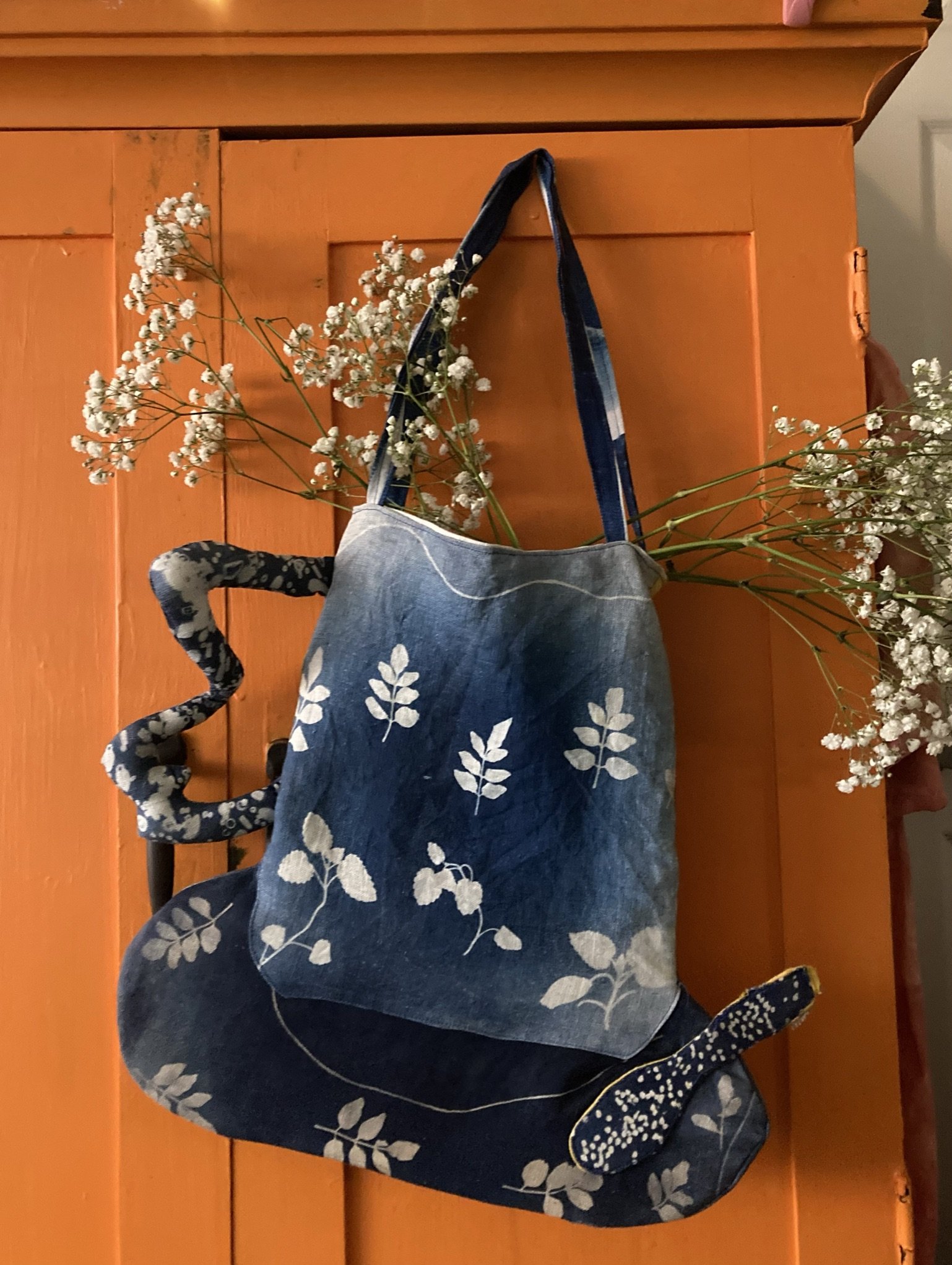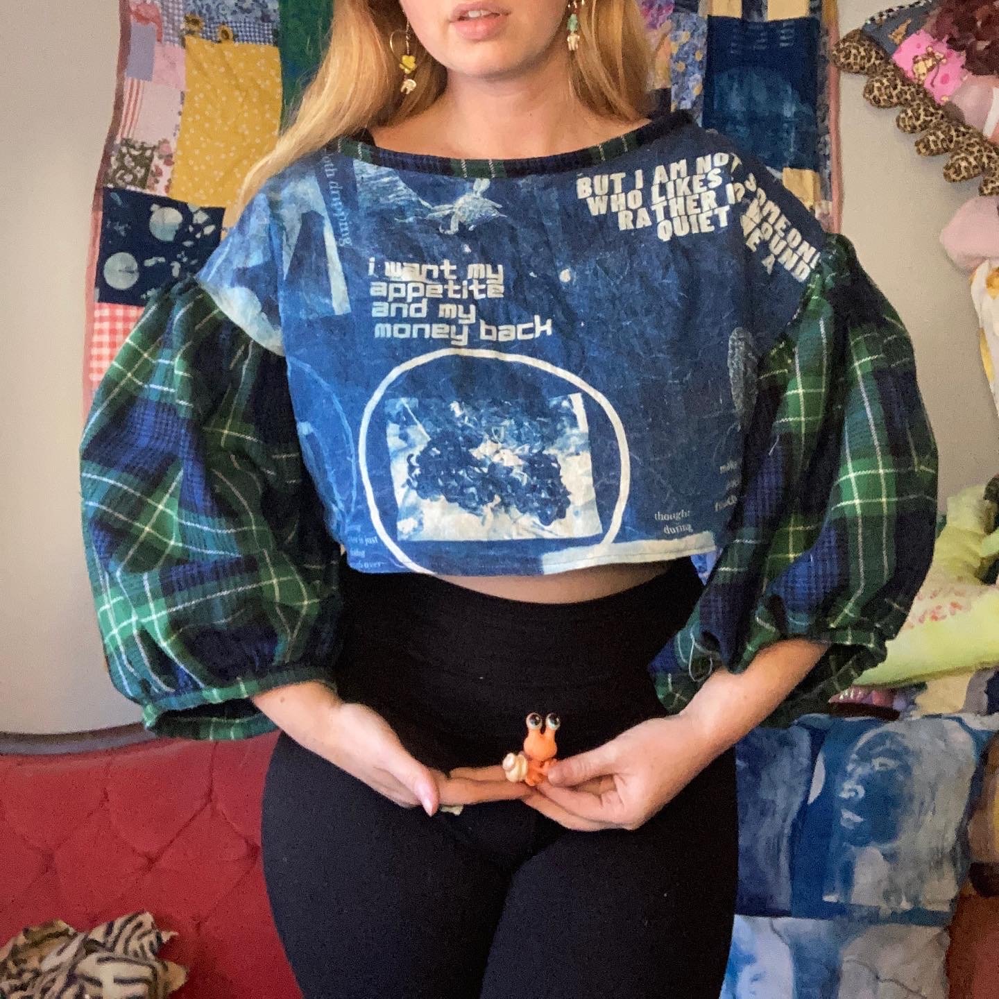 i’ve been working with cyanotype for ten years. i treat 95% cotton with cyanotype base, expose images i produce using a microscope, graphic design software, google images, my camera roll, etc in natural light or under indoor UV lamps and then sew the fabric into things you can wear. cyanotype is light fast and PH sensitive. they are more sculptural than meant for every day wear. like clothes you wear for prayer. you kind of remove yourself from your day to day inside of these. you run in the sprinkler until the sun fades your meaning. or whatever.