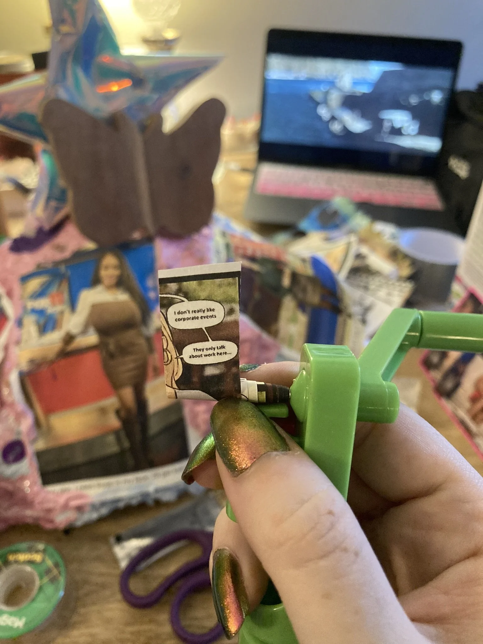 i watched b rated japanese horror movies on my lap top while thinking abt women doing their jobs and glitter gluing these women into my mountain.